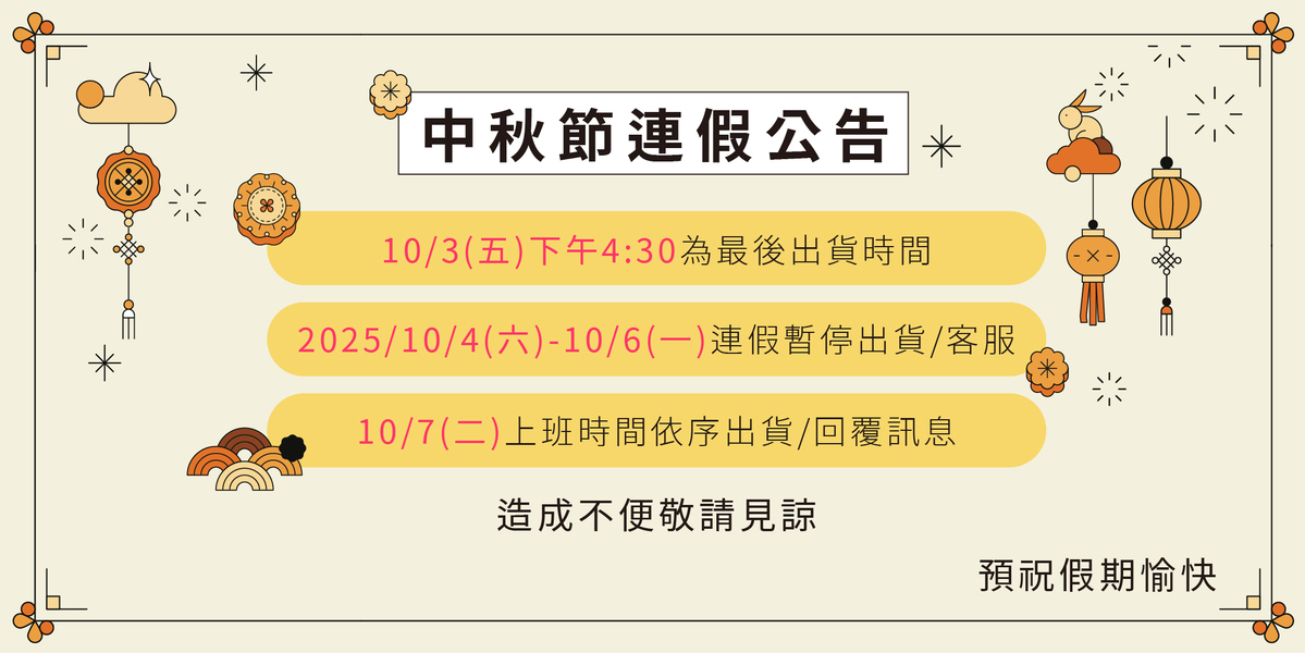 出貨時間 : 周一至周五 (假日/國定假日 不營業)