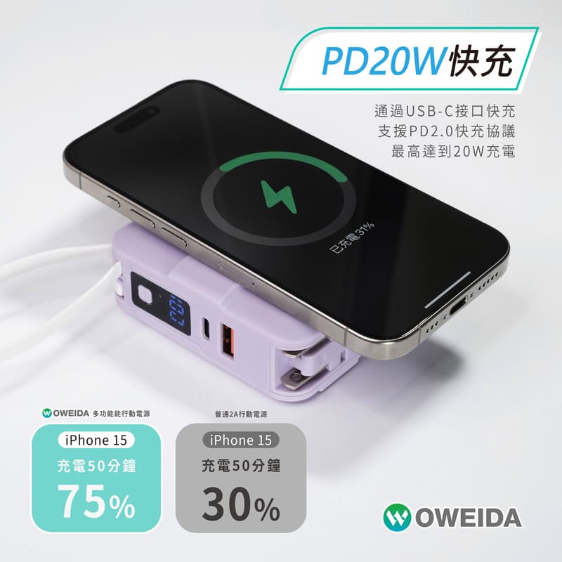 TypeC PD20W 輸出: 5V/3A ; 9V/2.22A ; 12V/1.67A