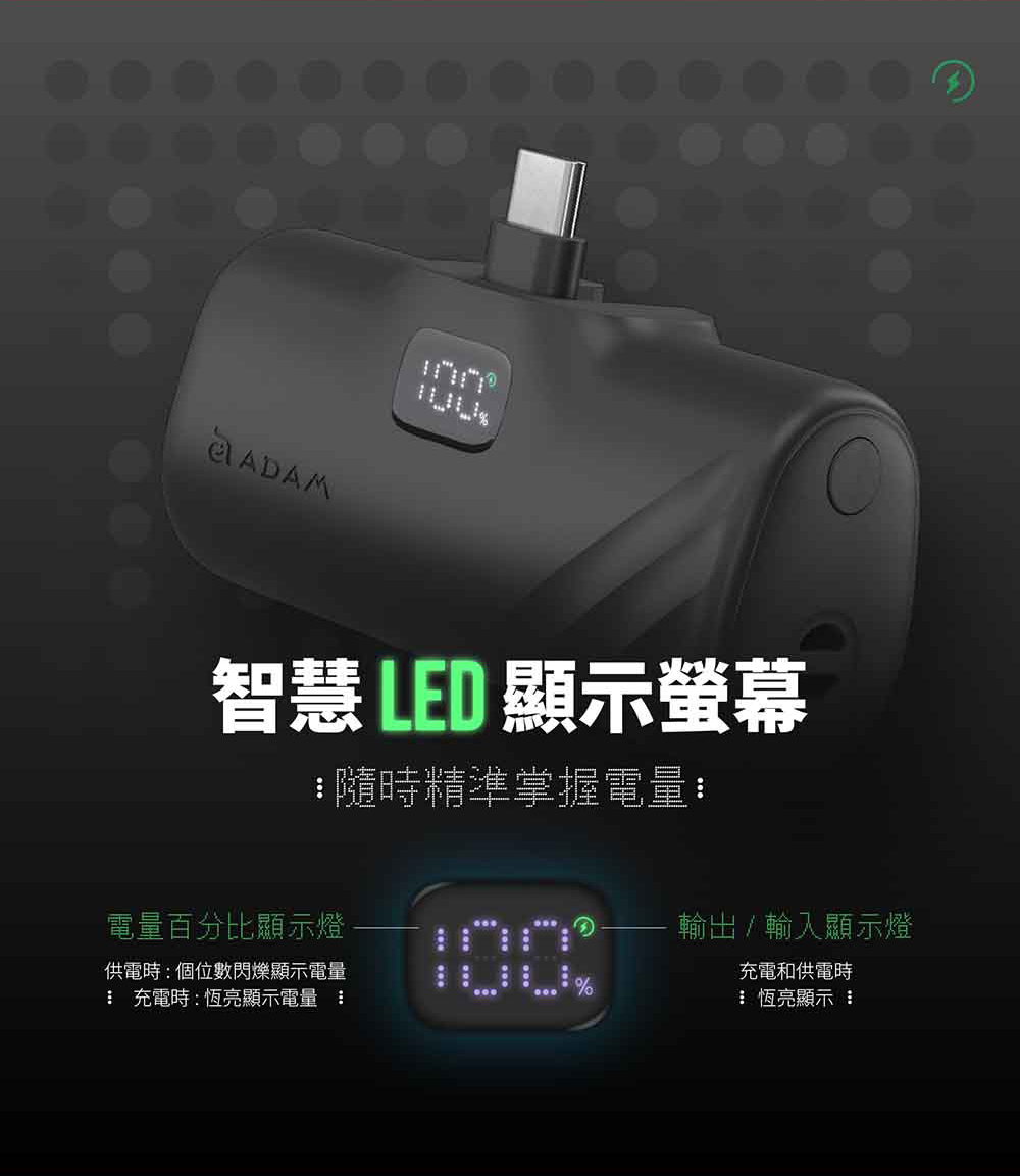 - 具備智慧LED顯示螢幕,隨時掌握電量。