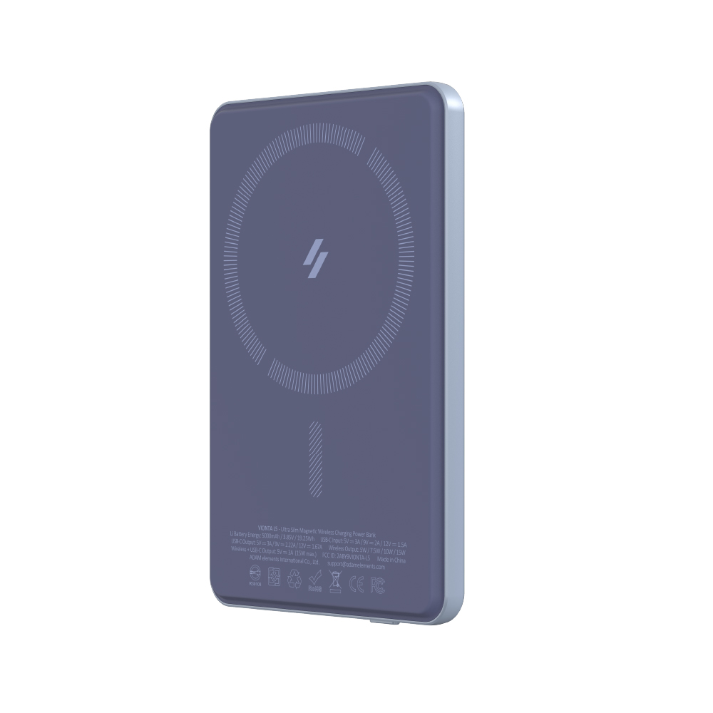 - 選用更極致的尺寸,搭配5000mAH的輕薄電芯,讓行動電源更好攜帶。