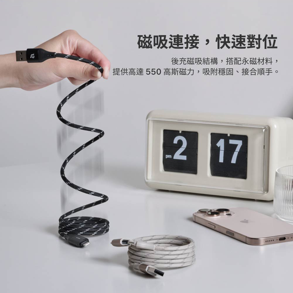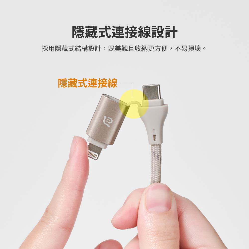 - 捨棄市面常見的外露轉接線,採用一體式隱藏結構,外型俐落美觀、堅固耐用,不僅降低斷裂風險,也更好收納。
