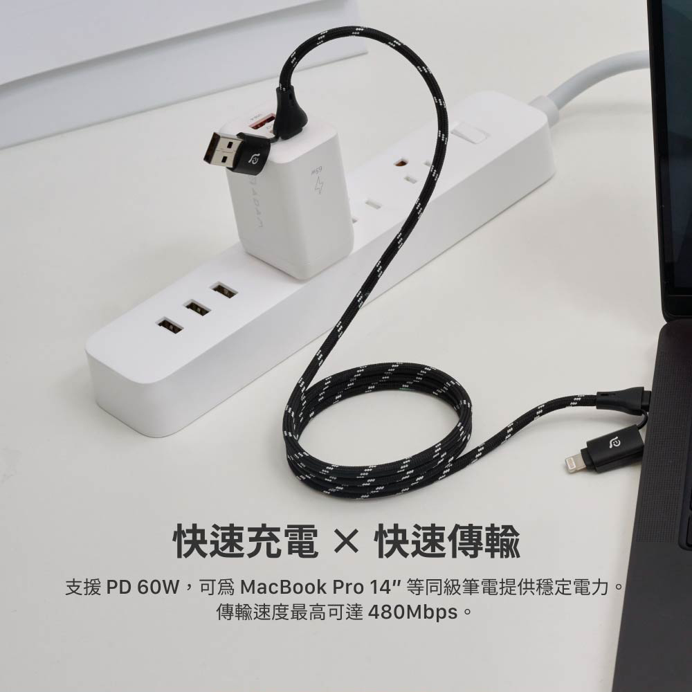 - 快速充電與同步傳輸,支援電源輸出最高60W(20V, 3A);傳輸速度:USB 2.0, 480Mbps。