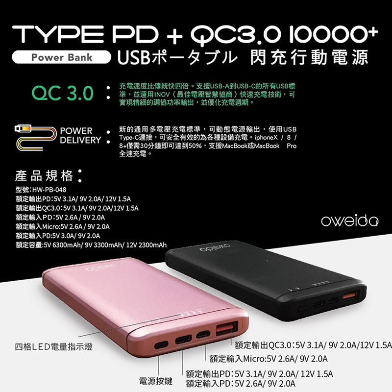 - 支援標準Type-C PD快充,輸出/輸入雙向