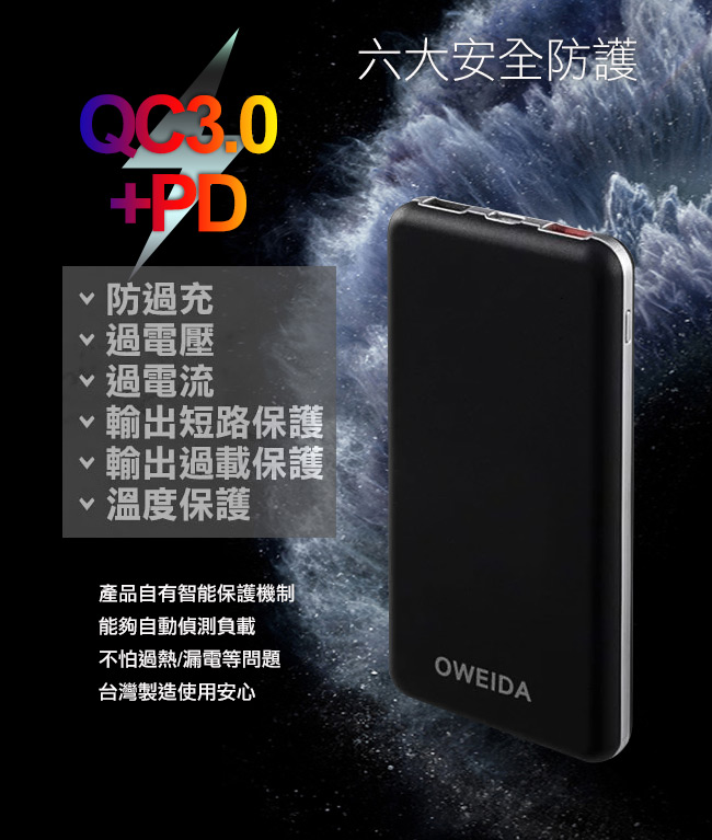 - 支援QC3.0快充技術,還有Type-C PD快充