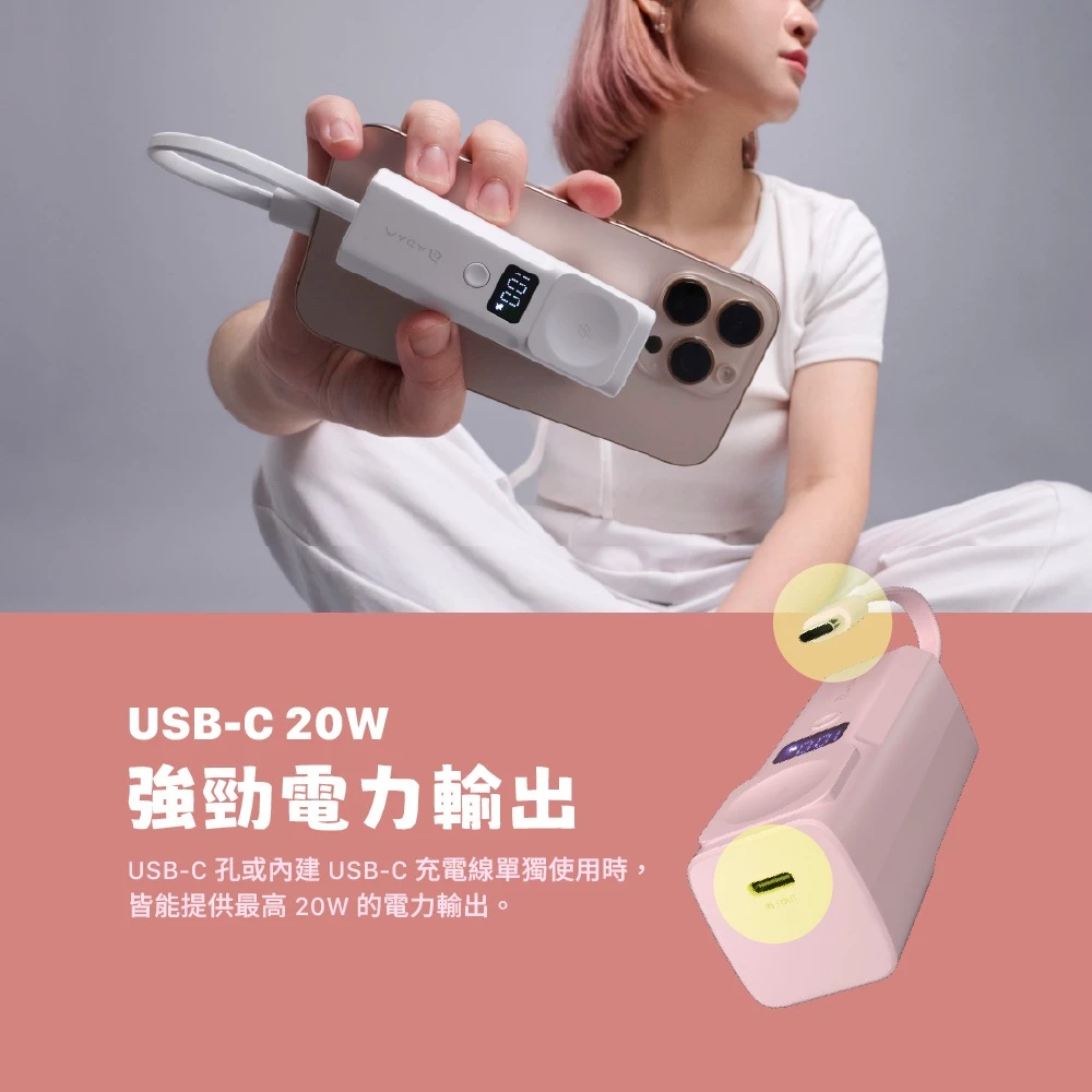 ❖ 內建USB-C線材/USB-C孔,並支援輸出/輸入功能,外出攜帶無負擔。