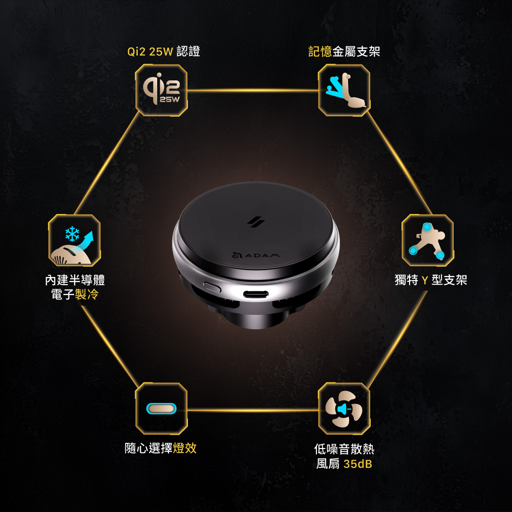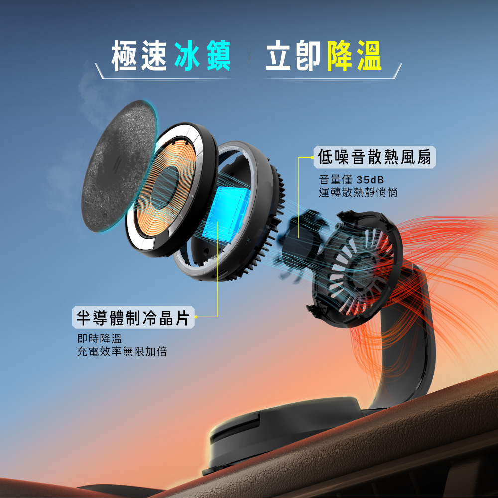 - 25W 無線充電搭配半導體制冷系統,待機最低可降至10°C,可完整體現「真無線快充」。