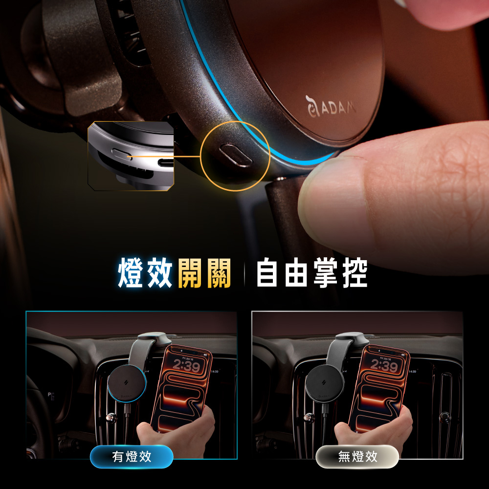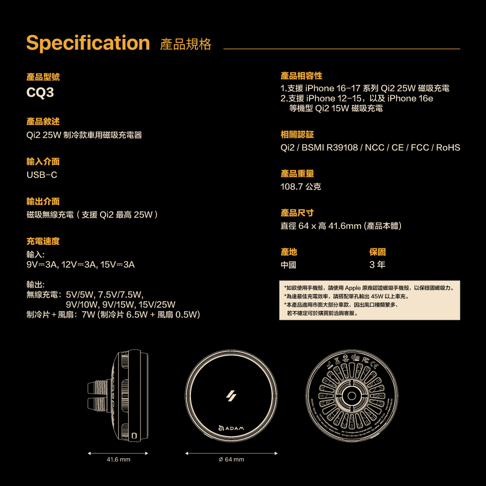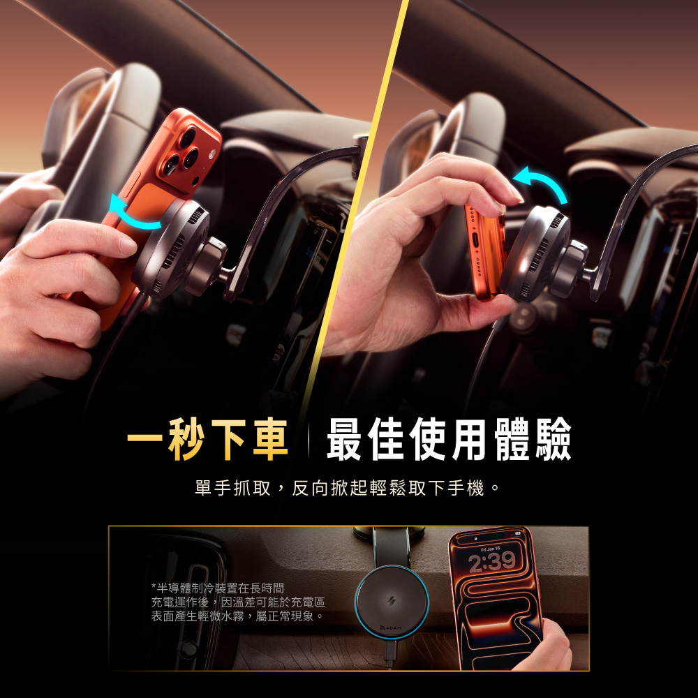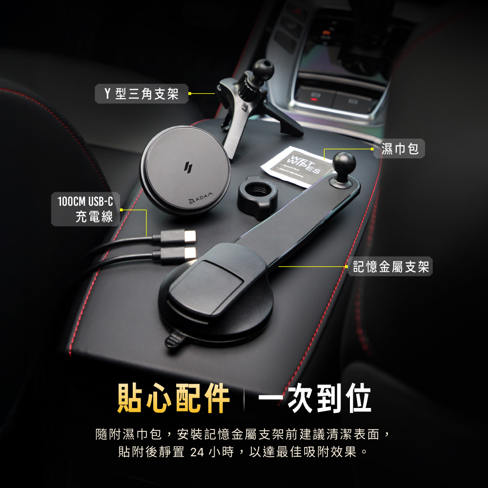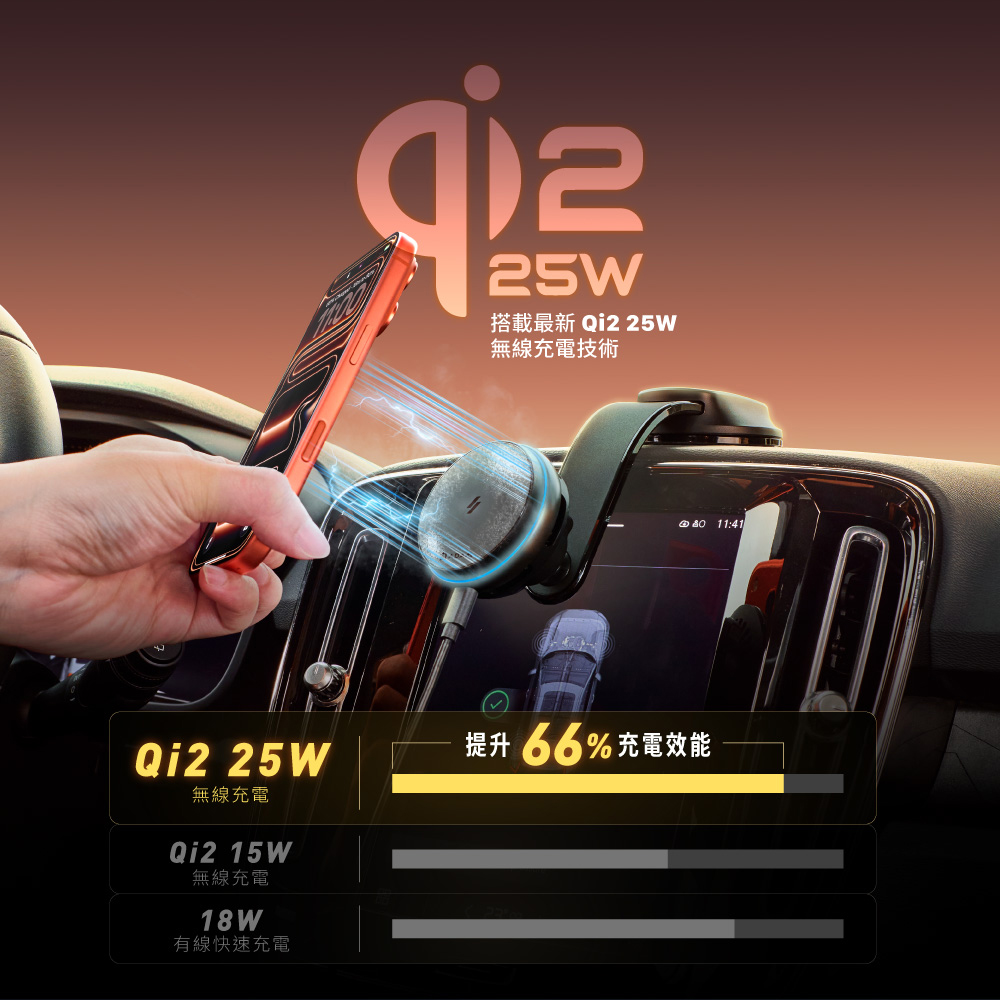 - 建議搭配單孔45W以上之車用充電器,以達到最高25W無線快充效能。