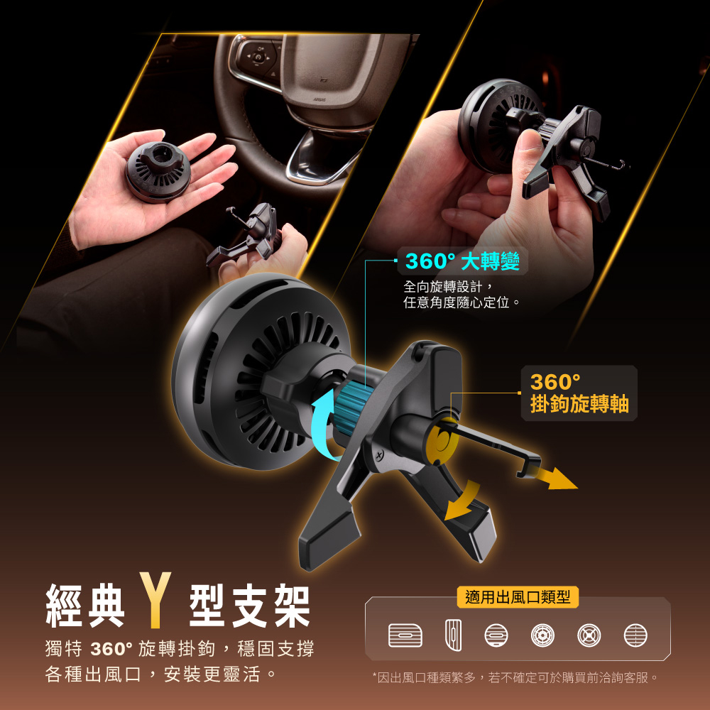 - 記憶金屬支架可隨意吸附不擋出風口,搭配自由彎折特性,依照習慣調整最佳視角。