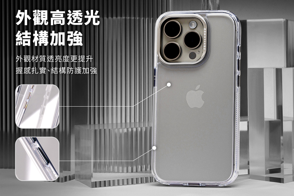 外觀高透光,結構加強,材質透亮度更提升,握感扎實、結構防護加強