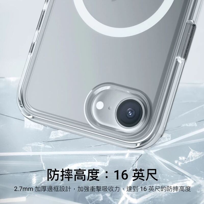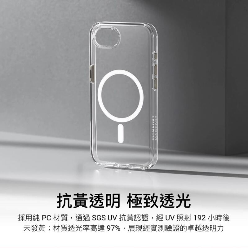 採用純 PC 材質,通過 SGS UV 抗黃認證,經 UV 照射 192 小時後未發黃;材質透光率高達 97%,展現經實測驗證的卓越透明力 - 防摔高度:16 英尺