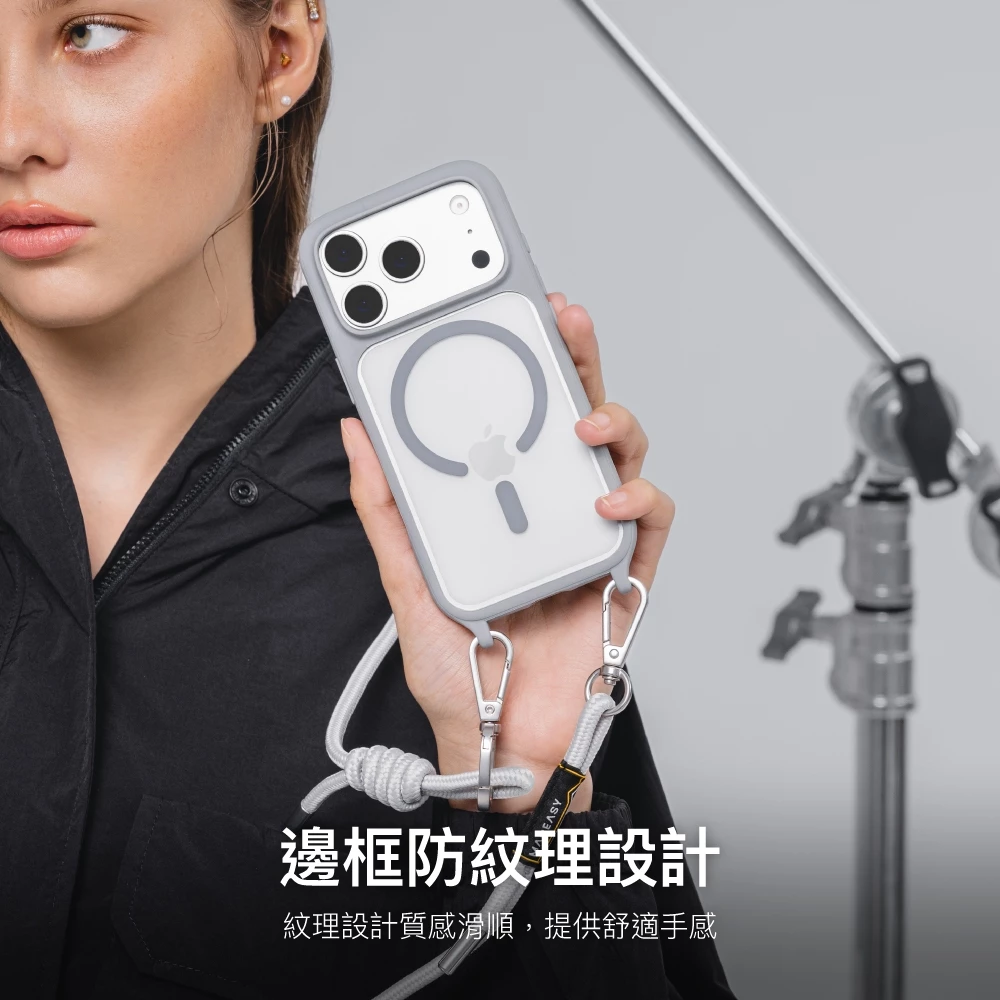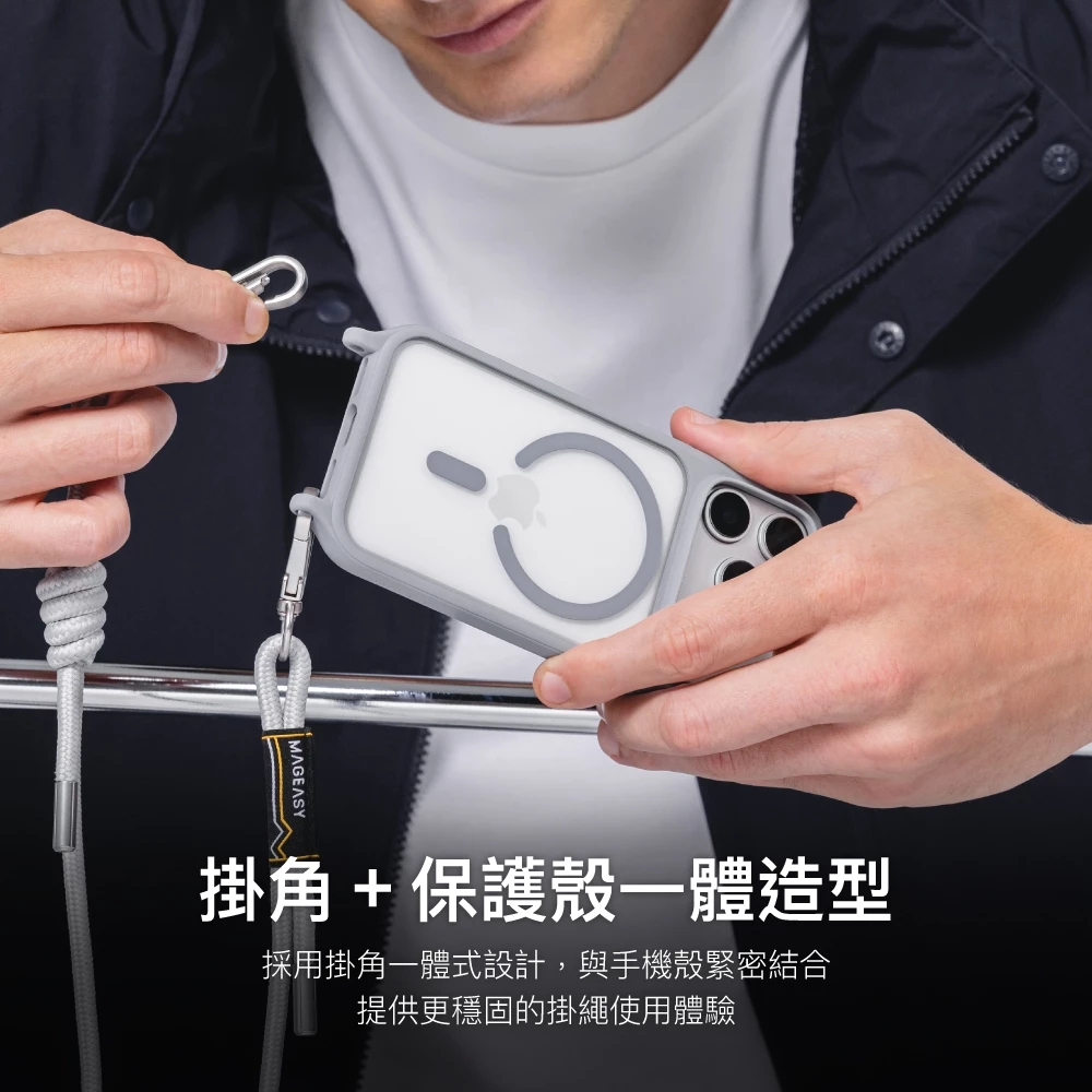 - 掛角 + 保護殼一體造型:採用掛角一體式設計,與手機殼緊密結合,提供更穩固的掛繩使用體驗。