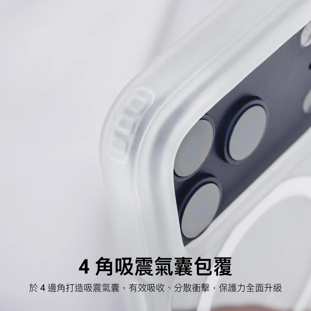 - 4 角吸震氣囊包覆:於 4 邊角打造吸震氣囊,有效吸收、分散衝擊,保護力全面升級。